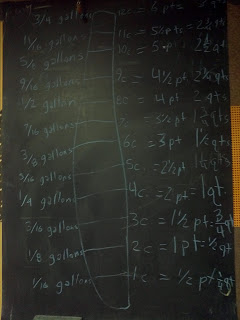 | This is how he added in his own differentiated learning. He was so excited to learn the differences in capacity that he drew these on the board, I did not assign this. |